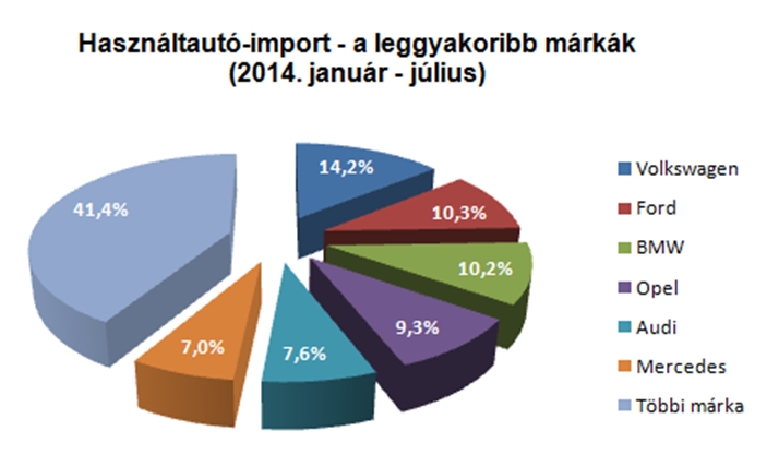 A kedvezőtlen árfolyam-elmozdulás másik jele a prémiummárkák arányának lassú csökkenése. Míg tavaly a Volkswagen után még a BMW volt a második leggyakoribb autómárka a behozatalban (11 százalék feletti részesedésével), a helyét idén a 2013-ban még a negyedik helyen szereplő Ford vette át. Az Audi aránya jelentősebben, 8,3 százalékról 7,6 százalékra, míg a Mercedesé minimálisan, 7,1-ről 7 százalékra csökkent.