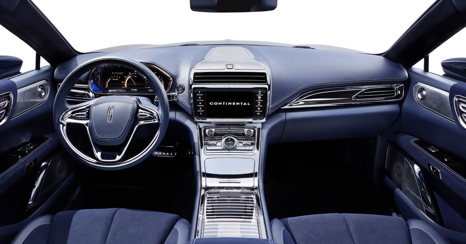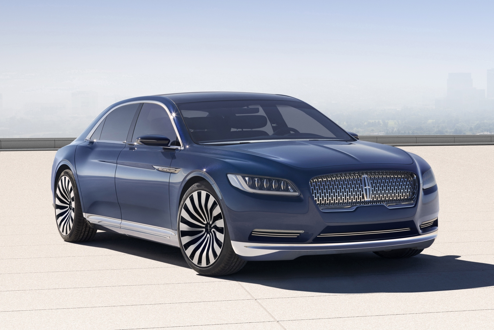 A Continental tanulmány hűtőmaszkja a Lincoln új arcát mutatja: a mélyített elem közepére helyezték a márkajelzést, amelyet apró emblémákból összerakott rács vesz körül. A fényszórók csúcstechnológiásak, mátrix LED kivitelűek lézeres távolsági fényszórókkal. A végletekig letisztult, roppantul elegáns karosszérián nem találunk egymással szemben nyíló ajtókat, az autóba bejutás azonban így is emlékezetes: az ajtók az ablakvonalba integrált, szárnyszerű kilincsek alján levő gombok megnyomására tárulnak fel és csendesen, szervomotoros rásegítéssel csukódnak. A tanulmány a Lincoln klasszikus kék színében pompázik.