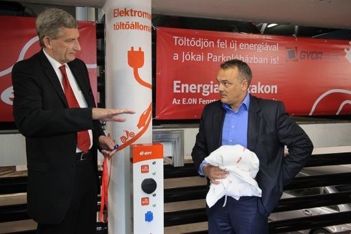 Győrben ünnepélyes keretek között átadták az E.ON Budapest-Bécs elektromos töltőállomás-hálózatának legújabb töltőit, így mától bárki használhatja a győri, tatai és mosonmagyaróvári kutakat. „Az infrastruktúra megteremtésével és komplex szolgáltatásokkal szeretnék megteremteni az elektromos autózás alapjait Magyarországon.” – mondta Dr. Eric Depluet, az E.ON Hungária Zrt. vezérigazgatója. Az ünnepélyes átadón az E.ON egy elektromos rásegítésű kerékpárt ajándékozott Győr városának, melyet Borkai Zsolt polgármester vett át a város nevében.