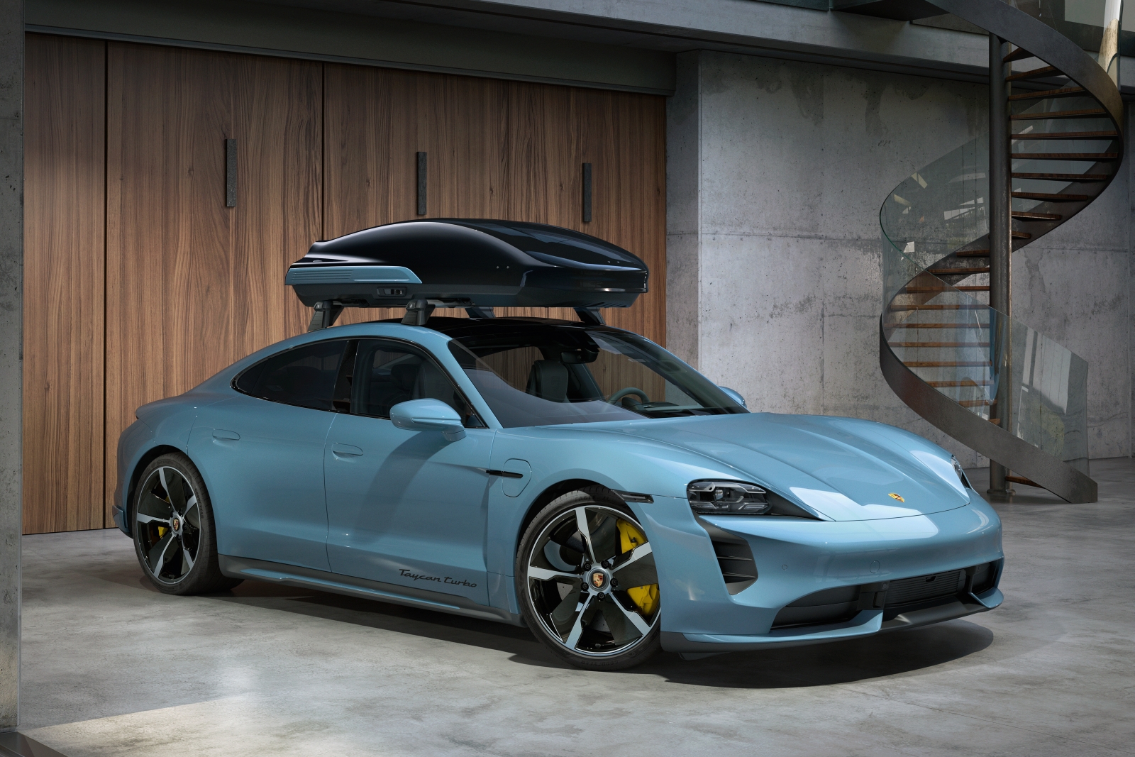 Az elektromos hajtású Taycan Cross Turismóhoz kifejlesztett tetőbox mérete 212 x 92 x 44,5 centiméter, űrmérete pedig 480 liter. Ez azt jelenti, hogy a mindkét oldalról nyitható boxban akár öt pár síléc vagy három hódeszka is elhelyezhető. A terhelhetősége 75 kilogramm.